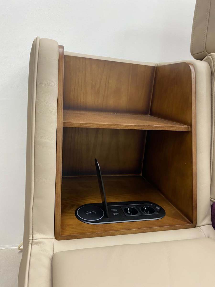 entradas USB e Type-C, e um  carregador por indução integrado